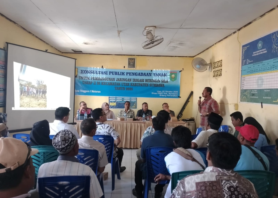 SUMBAWA–Konsultasi Publik Pengadaan Tanah untuk Pembangunan Jaringan Irigasi Beringin Sila Tahap II di Desa Stowe Brang, Kecamatan Utan, Kabupaten Sumbawa telah sukses digelar pada Kamis, 2 Oktober 2025.