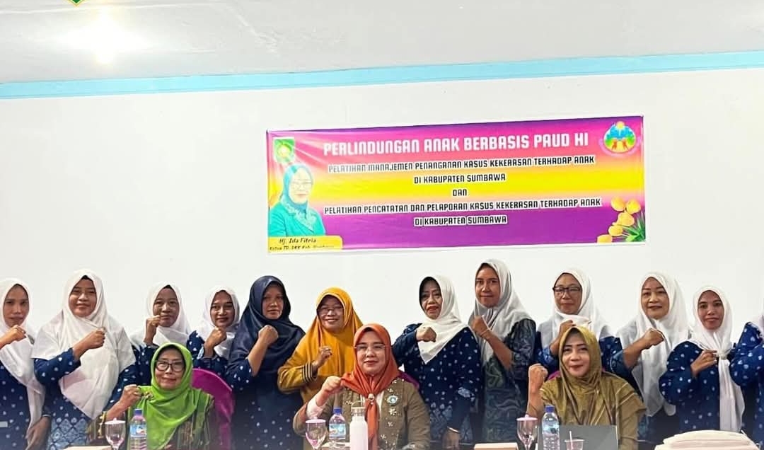 SUMBAWA–Bunda PAUD Kabupaten Sumbawa, Hj. Ida Fitria Syarafuddin Jarot, SE, menegaskan bahwa guru PAUD memiliki peran vital sebagai garda terdepan dalam mendeteksi dan melindungi anak dari kekerasan. Hal itu disampaikan saat membuka Pelatihan Manajemen Penanganan Kasus Kekerasan terhadap Anak di Hotel Dewi, Selasa (30/09/2025).