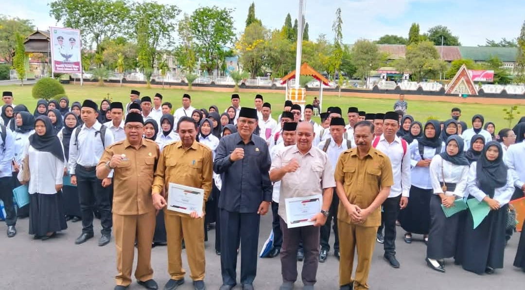 SUMBAWA–Dua pejabat eselon II di Lingkup Pemkab Sumbawa, memasuki purna tugas. Mereka adalah Drs. Irawan Subekti, Asisten Pemerintahan dan Kesra, dan Ir. Dirmawan, Asisten Administrasi Umum pada Sekretariat Daerah Kab. Sumbawa. Acara pelepasan bersamaan dengan  penyerahan SK PPPK Tahap II Formasi 2024 di halaman Kantor Bupati Sumbawa, Selasa (30/9).
