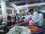 SUMBAWA–Bupati Sumbawa, Ir. H. Syarafuddin Jarot, MP, bersama Wakil Bupati, Drs. H. Mohamad Ansori, melakukan inspeksi mendadak (sidak) ke Pasar Seketeng,