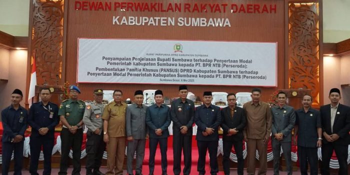 SUMBAWA–DPRD Sumbawa gelar sidang paripurna pertama terkait penyertaan modal daerah berupa tanah Pemerintah Kabupaten Sumbawa pada PT. BPR NTB Perseroda (6/5/2025). Sidang Paripurna DPRD dipimpin oleh Wakil Ketua II DPRD Gitta Liesbano SH MKn didampingi oleh Wakil Ketua III Zulfikar Demitry SH. Hadir dari Pemerintah Daerah Sekretaris Daerah Dr Budi Prasatiyo dan Forkopimda Sumbawa bersama Kepala OPD dan pimpinan BUMD serta para Kepala Desa dan Mahasiswa.