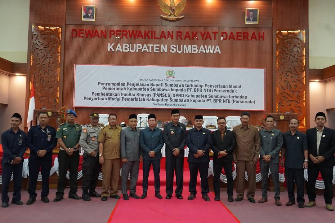 SUMBAWA–DPRD Sumbawa gelar sidang paripurna pertama terkait penyertaan modal daerah berupa tanah Pemerintah Kabupaten Sumbawa pada PT. BPR NTB Perseroda (6/5/2025). Sidang Paripurna DPRD dipimpin oleh Wakil Ketua II DPRD Gitta Liesbano SH MKn didampingi oleh Wakil Ketua III Zulfikar Demitry SH. Hadir dari Pemerintah Daerah Sekretaris Daerah Dr Budi Prasatiyo dan Forkopimda Sumbawa bersama Kepala OPD dan pimpinan BUMD serta para Kepala Desa dan Mahasiswa.