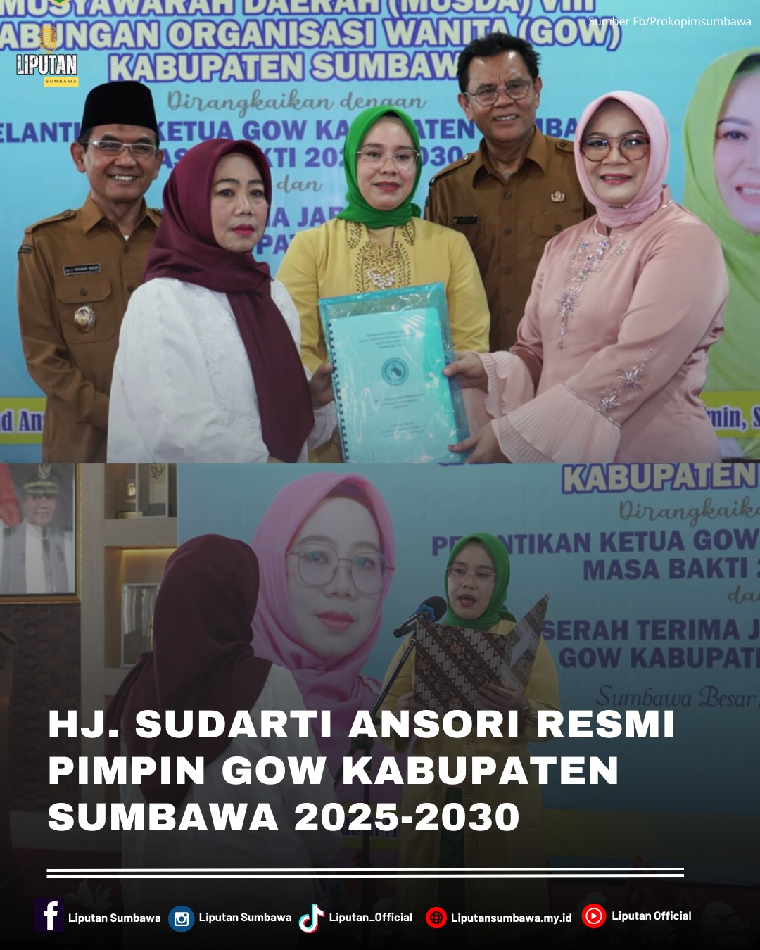SUMBAWA–Dra. Hj. Sudarti Mohamad Ansori resmi dilantik sebagai Ketua Gabungan Organisasi Wanita (GOW) Kabupaten Sumbawa masa bakti 2025–2030. Pelantikan ini dirangkaikan dengan penutupan Musyawarah Daerah (Musda) ke-VIII GOW Kabupaten Sumbawa, yang digelar pada Selasa (29/4) sore di Aula H. Madilaoe ADT, Kantor Bupati Sumbawa.