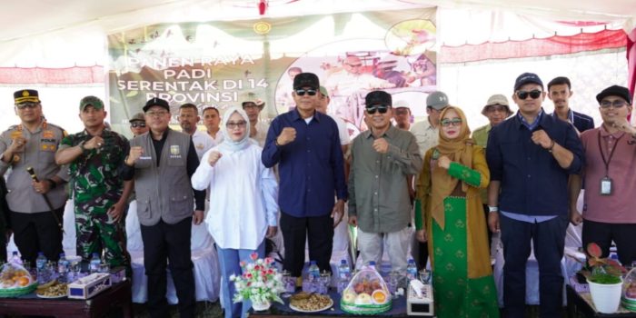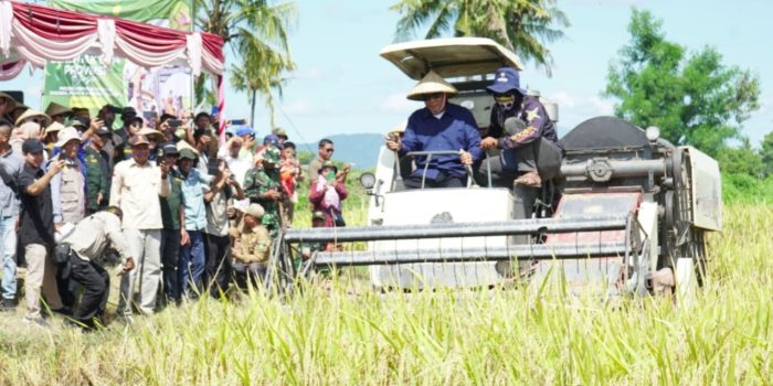 SUMBAWA–Bupati Sumbawa, Ir. H. Syarafuddin Jarot, M.P., dan Wakil Bupati, Drs. H. Mohamad Ansori melakukan panen raya di desa Kakiang, Kecamatan Moyo Hilir, Senin (7/4). Kegiatan tersebut merupakan semangat mewujudkan swasembada pangan dan memperkuat ketahanan pangan nasional. Panen raya ini diikuti  jajaran Forkopimda, Sekretaris Daerah, serta sejumlah Kepala OPD.
