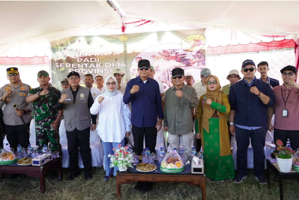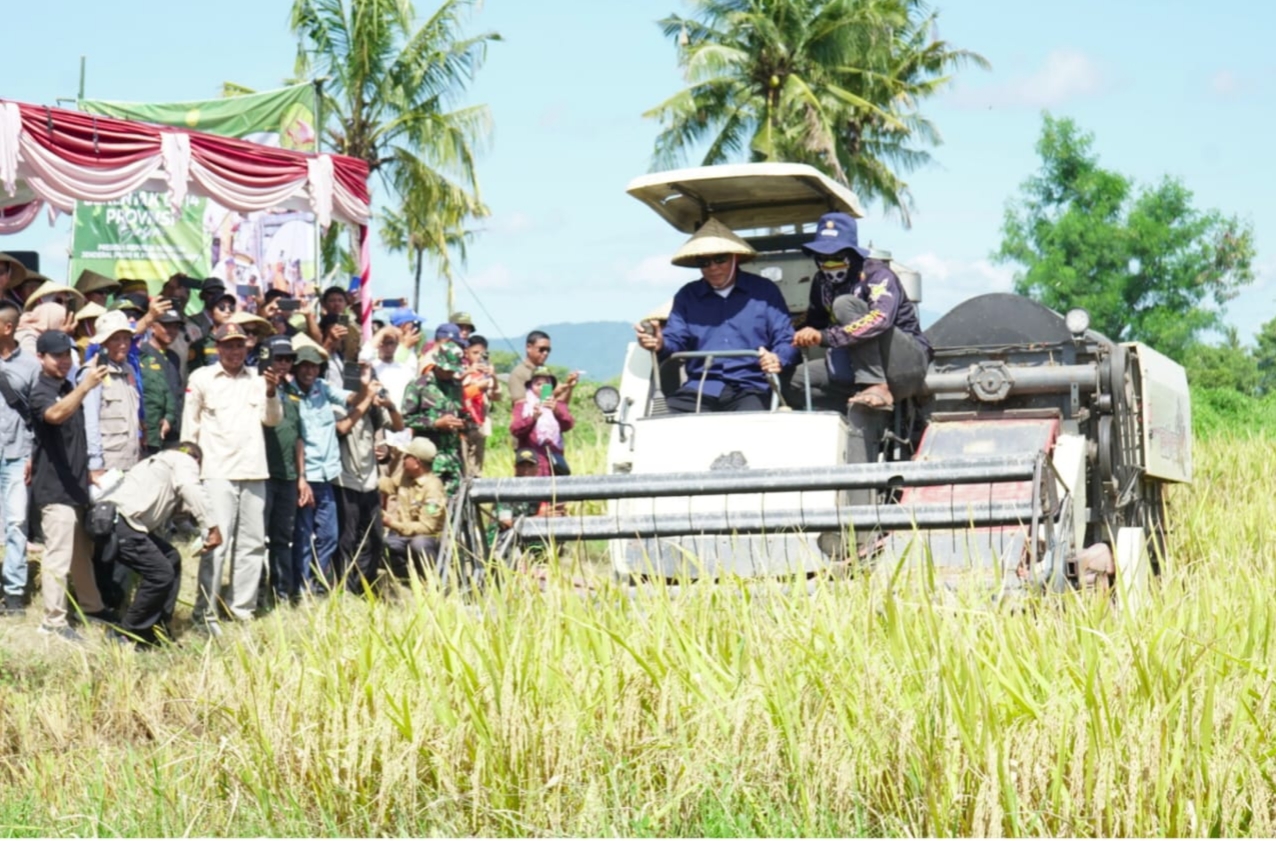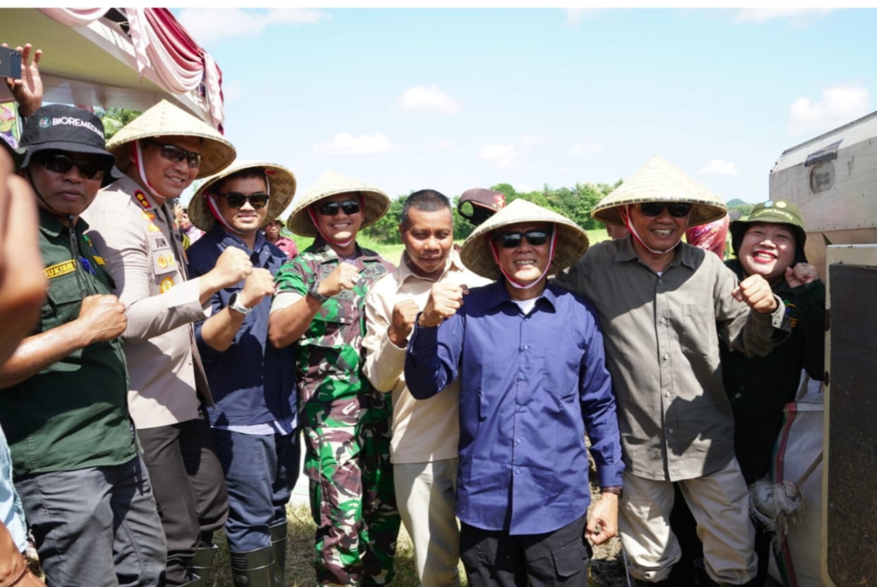 SUMBAWA–Bupati Sumbawa, Ir. H. Syarafuddin Jarot, M.P., dan Wakil Bupati, Drs. H. Mohamad Ansori melakukan panen raya di desa Kakiang, Kecamatan Moyo Hilir, Senin (7/4). Kegiatan tersebut merupakan semangat mewujudkan swasembada pangan dan memperkuat ketahanan pangan nasional. Panen raya ini diikuti  jajaran Forkopimda, Sekretaris Daerah, serta sejumlah Kepala OPD.