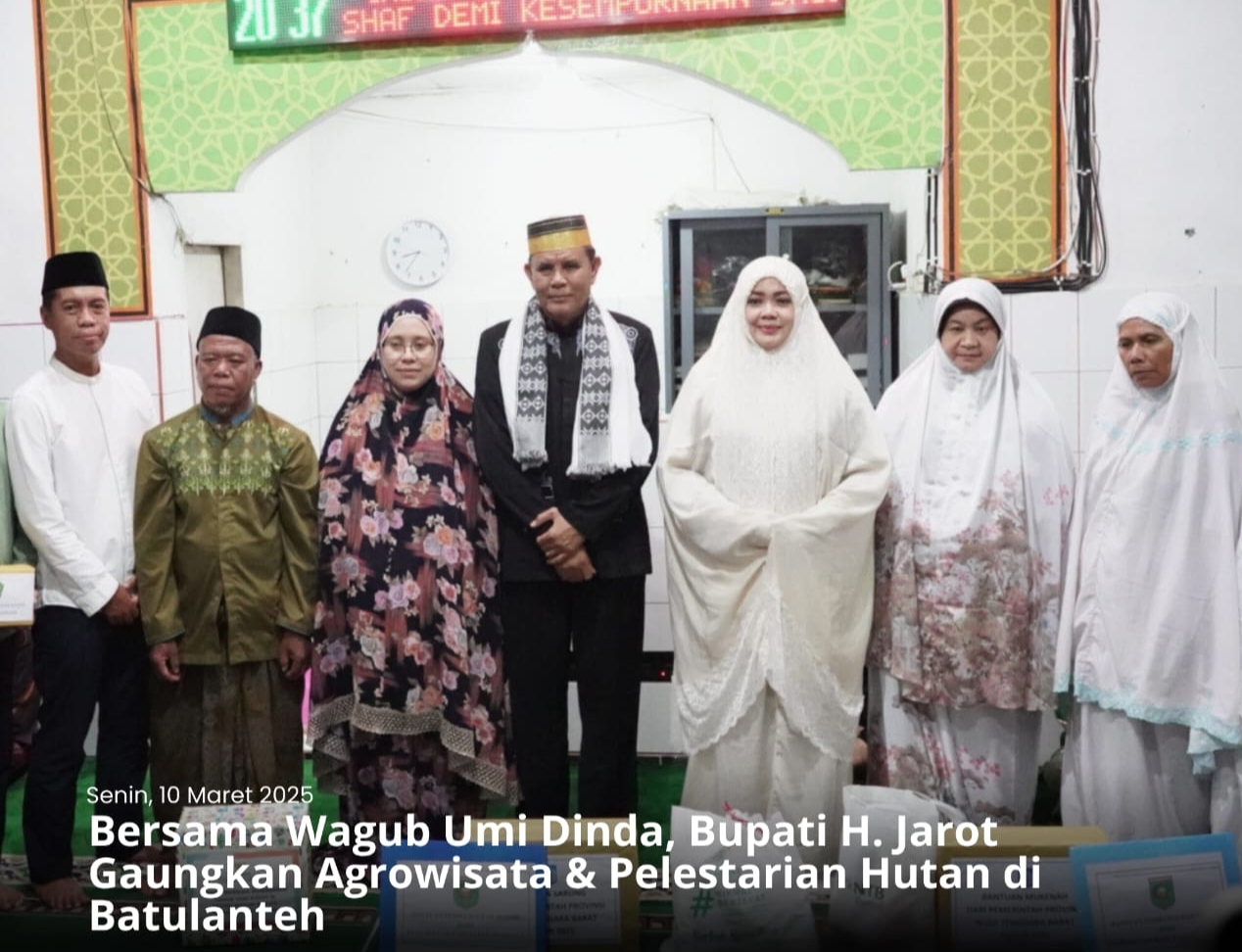 “Kami hadir bukan untuk membanggakan jabatan, tetapi untuk memberi contoh bagaimana pejabat dan masyarakat harus bersama-sama memakmurkan masjid dan musholla,” tegasnya.